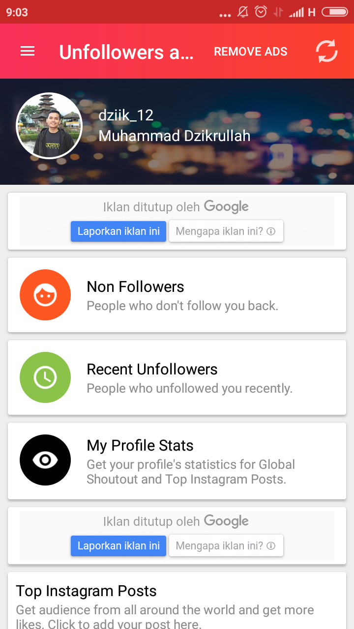 3. Ada dua fitur yang mau saya jelas kan kali ini, yang pertama adalah Non Followers, fitur ini berfungsi untuk mengetahui orang-orang yang belum men-followback akun instagrammu. Kemudian ada unfollowers, fitur ini berfungsi untuk mengetahui orang-orang yang men-unfollowmu baru-baru ini.