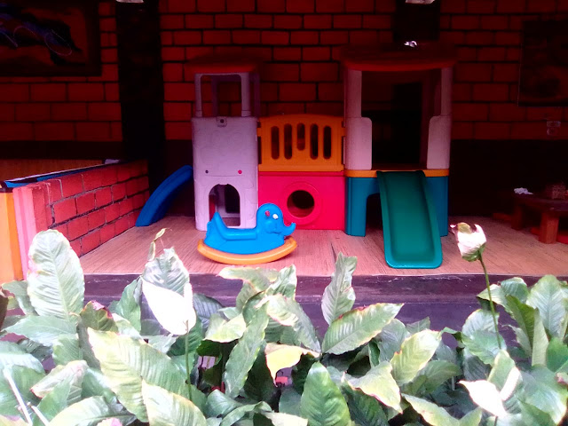 Waah ada playgroundnya. Suka sama restoran yang ada playgroundnya gini. Soale si kecil cepet bosen. Kalau ada kayak gini emaknya bisa rumpi rumpi anaknya main. Sayang jauh banget ya di Malang.
